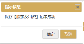 1)點擊“添加”按鈕,彈出編輯窗口。如實填寫股東及其出資信息后點擊“保存”按鈕,彈出保存成功的界面,點擊“確定”后頁面自動關(guān)閉。添加或修改時實繳信息部分要將前邊方框要勾選“對號”