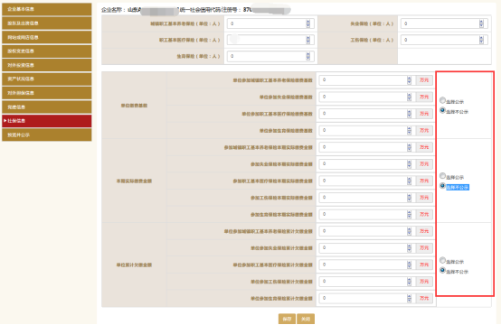 1)企業(yè)如實填寫其社保信息,所有信息都為必填,可選擇是否公示。