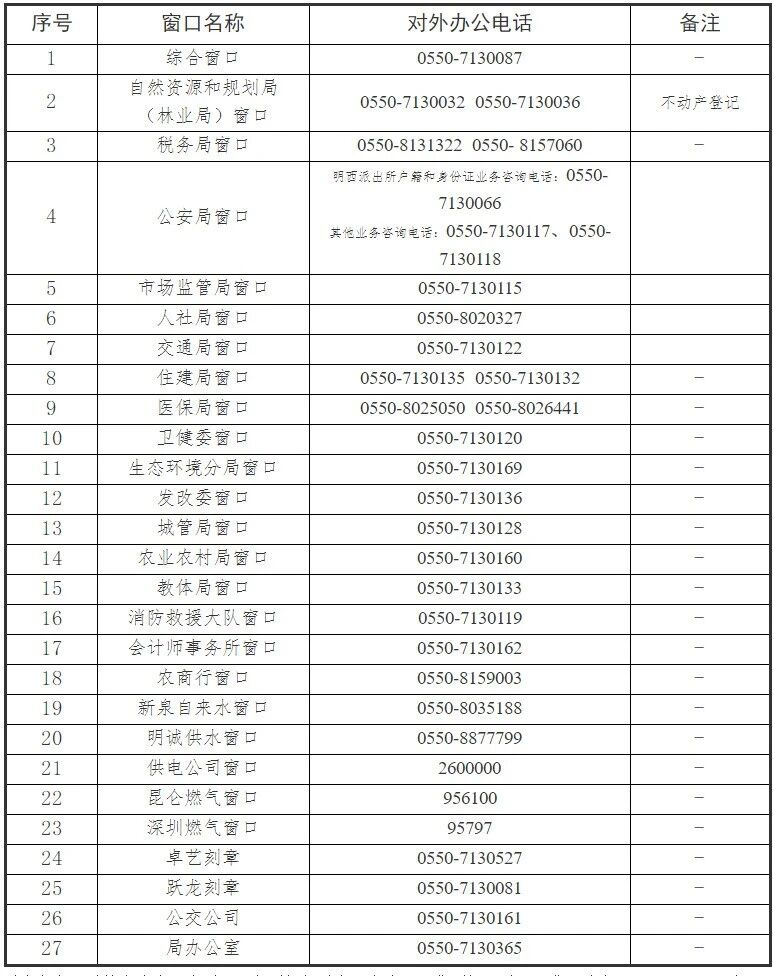 為進一步提升政務(wù)服務(wù)質(zhì)量,方便企業(yè)和群眾高效辦理各類政務(wù)事項,現(xiàn)將明光市政務(wù)服務(wù)中心各入駐窗口最新對外辦公電話予以公布。