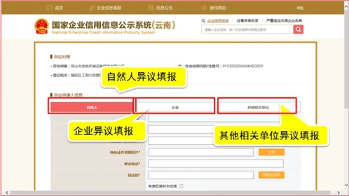 第五步:按照異議申請(qǐng)人信息選擇“自然人”、“企業(yè)”或“其他相關(guān)單位”。