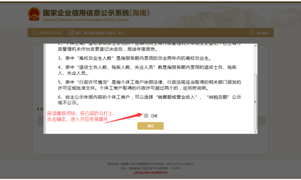 選擇對應年度,會跳出關于個體戶填報須知的相關內(nèi)容,請客戶仔細閱讀并勾上已閱,進入下一步:如下圖