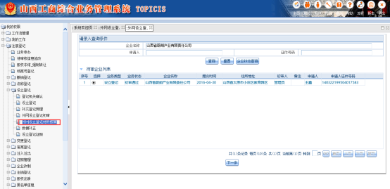 工商人員,點(diǎn)擊【注冊(cè)登記】-【設(shè)立登記】-【外網(wǎng)設(shè)立登記材料核審】,輸入企業(yè)名稱(chēng),點(diǎn)擊【查詢】