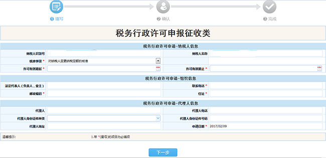 納稅人識(shí)別號(hào)、納稅人名稱、法定代表人、申請(qǐng)日期均為免填項(xiàng)。
