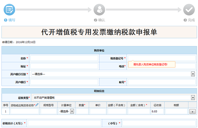 注:未做增值稅發(fā)票核定申請的用戶通過平臺上申請增值稅發(fā)票核定。