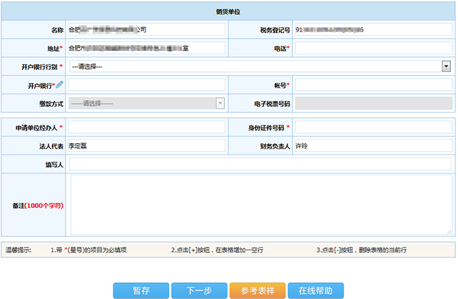 銷貨單位信息(名稱、稅務(wù)登記號、地址、電話、開戶銀行、賬號)、法人代表、財務(wù)負(fù)責(zé)人、財務(wù)負(fù)責(zé)人均為免填項。
