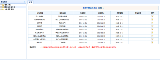 進行申報。還可通過點擊按鈕進行刷新、導出、打印操作。