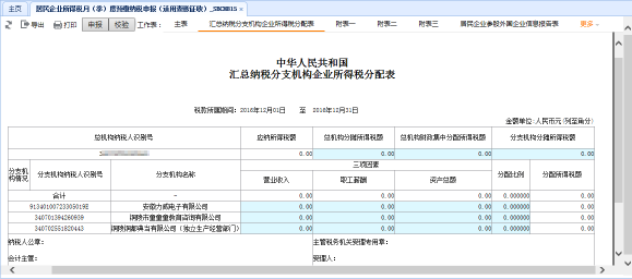 輸入總機構分攤所得稅額、總機構財政集中分配所得稅額、分支機構分攤所得稅額,各分支機構營業(yè)收入、職工薪酬、資產總額、分配比例。其他項目自動計算。