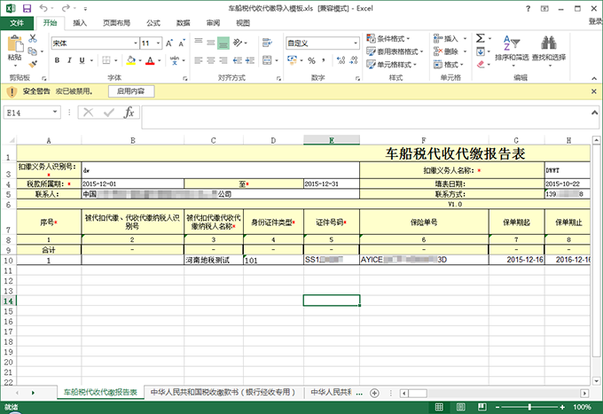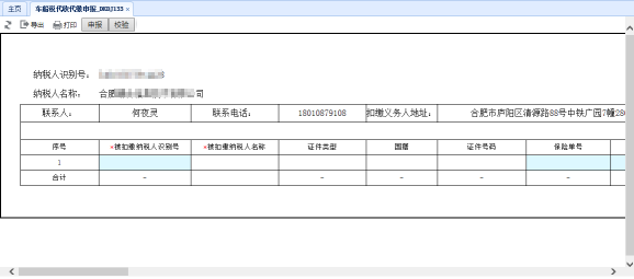 輸入被扣繳納稅人識(shí)別號(hào),自動(dòng)帶出被扣繳納稅人名稱、證件類型、國(guó)籍、證件號(hào)碼。輸入保險(xiǎn)單號(hào)、保單期起止、簽單日期、號(hào)牌號(hào)碼、車(chē)輛識(shí)別代碼、發(fā)動(dòng)機(jī)號(hào)碼、品牌型號(hào),選擇機(jī)動(dòng)車(chē)種類、車(chē)輛發(fā)票或注冊(cè)登記日期、使用性質(zhì)、燃料種類,輸入排氣量(毫升)、核定載客、整備質(zhì)量,選擇征收品目、計(jì)稅單位,輸入計(jì)稅單位數(shù)量、本年減免稅額、減免稅證明編號(hào)、減免性質(zhì)代碼、完稅憑證號(hào)、開(kāi)具稅務(wù)機(jī)關(guān)、納稅人拒絕代收信息、當(dāng)年應(yīng)繳稅額、往年補(bǔ)繳稅額、滯納金,其他項(xiàng)目計(jì)算。通過(guò)