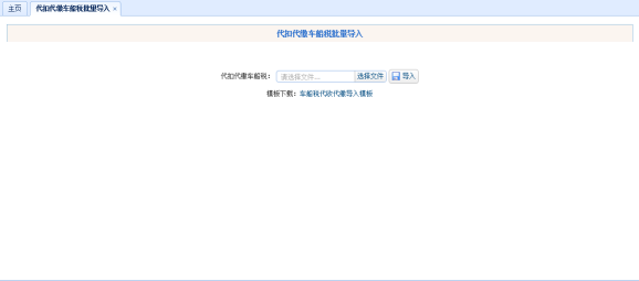 按照【申報(bào)納稅】—【受理即辦類】—【申報(bào)納稅】—【地稅申報(bào)】—【車(chē)船稅代收代繳】-【代扣代繳車(chē)船稅批量導(dǎo)入】的路徑進(jìn)入該功能模塊,進(jìn)入模塊后。如圖3.4.1.1.5.2-1所示: