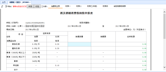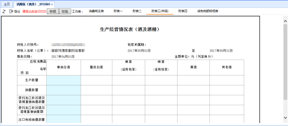 根據(jù)納稅人登記的稅費種信息,填寫對應列生產(chǎn)數(shù)量、銷售數(shù)量、委托加工收回酒及酒精直接銷售數(shù)量、委托加工收回酒及酒精直接銷售額、出口免稅銷售數(shù)量、出口免稅銷售額。