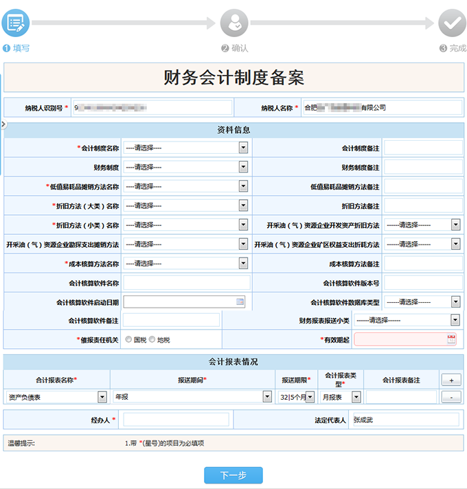 按照【稅務(wù)登記】—【受理即辦類】—【財務(wù)會計制度備案】的路徑進(jìn)入該功能模塊,進(jìn)入模塊后。如圖3.1.2-1所示:
