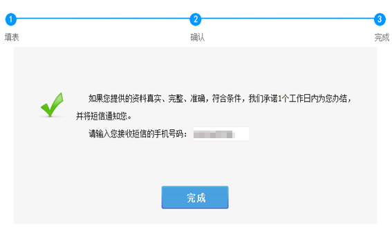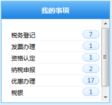 在“手機號碼”輸入框中輸入:手機號碼(辦稅人員的聯(lián)系方式),點擊“完成”按鈕,則關(guān)閉當(dāng)前頁面,當(dāng)前整個申請已經(jīng)完成,“我的事項”區(qū)域新增一條數(shù)據(jù),如圖3.1.2-5。(注:所有業(yè)務(wù)操作類似,后面不再重復(fù)說明。)
