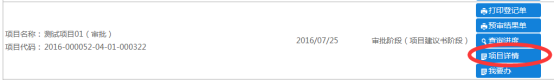 3、選擇要查詢的項(xiàng)目,在右側(cè)“操作”區(qū)域,點(diǎn)擊“項(xiàng)目詳情”按鈕。