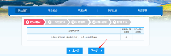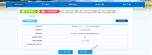 4.下載《吉林省企業(yè)投資項(xiàng)目備案申請表》。事項(xiàng)選擇后,陸續(xù)進(jìn)入“聯(lián)審確定”和“一次性告知”環(huán)節(jié),這兩個(gè)環(huán)節(jié)中只需點(diǎn)擊“下一步”按鈕即可。