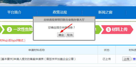 5.上傳簽字和蓋公章后的《吉林省企業(yè)投資項(xiàng)目備案申請表》電子檔。
