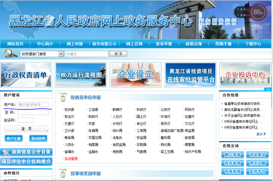 也可以用黑龍江省人民政府網(wǎng)上政務服務中心:http://www.hljzwzx.gov.cn 地址的前臺賬號密碼進行登錄投資項目系統(tǒng)。(如圖2)