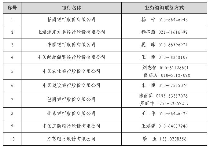 合作托管銀行名單: