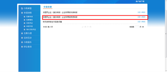 操作人員按照【申報納稅】—【我要申報】的順序進入本模塊。系統(tǒng)顯示申報清冊頁面