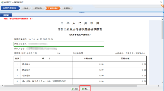 進入申報確認界面,點擊【確認】。