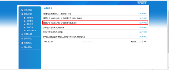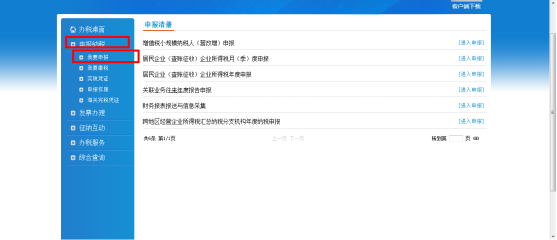 操作人員按照【申報納稅】—【我要申報】的順序進入本模塊。系統(tǒng)顯示申報清冊頁面