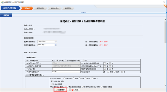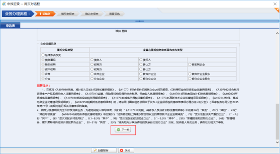 系統(tǒng)顯示填寫申報表頁面,填寫申報引導(dǎo)頁相關(guān)信息,拉到最下面點擊【下一步】