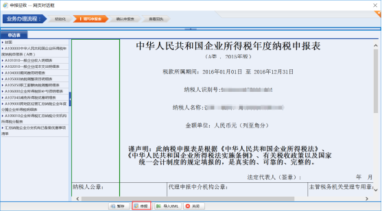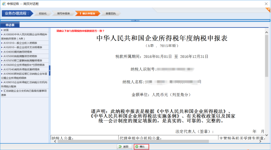 表格校驗通過后,點擊【申報】進行報表提交,然后再點擊【確認】按鈕,確認提交報表。