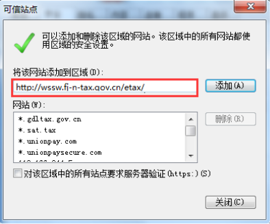 ? 將業(yè)務(wù)系統(tǒng)的訪問地址添加到網(wǎng)站中, 如果業(yè)務(wù)系統(tǒng)服務(wù)地址是https開頭的請勾選中“對該區(qū)域中的所有站點(diǎn)要求服務(wù)器驗(yàn)證(https:)(S)”, 如果是http開頭的,請去掉勾選。