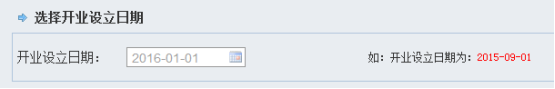 6、選擇開業(yè)設(shè)立日期系統(tǒng)自動調(diào)用企業(yè)開業(yè)登記日期,無法修改;
