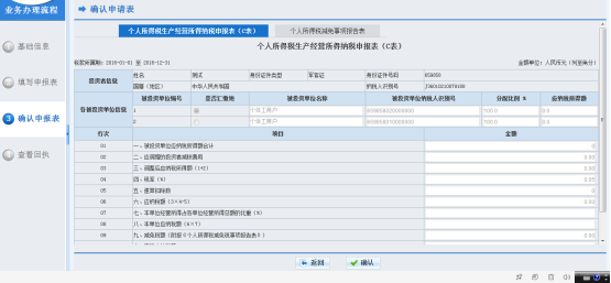11、確認(rèn)數(shù)據(jù)無誤后,點(diǎn)擊【確認(rèn)】進(jìn)行申報(bào),系統(tǒng)返回申報(bào)回執(zhí)單;點(diǎn)擊【返回】鍵進(jìn)行數(shù)據(jù)修改。