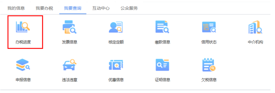 納稅人可通過【我要查詢】—【辦稅進度】模塊,查詢已提交辦稅事項受理進度。