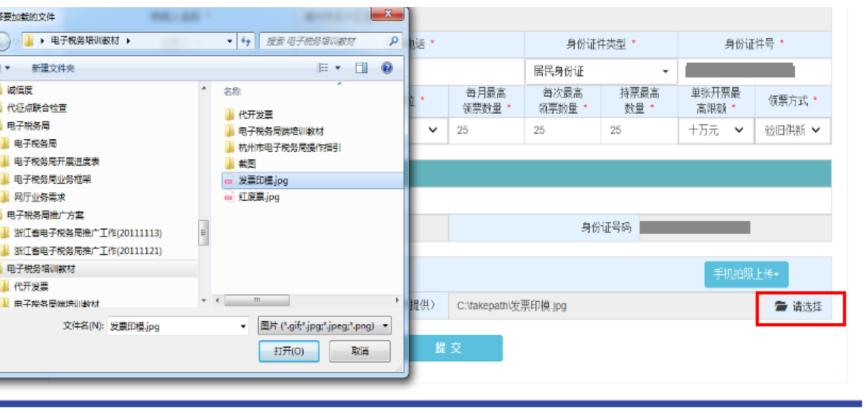 通過調(diào)取電腦已存文件或圖像進行上傳發(fā)票專用印模,如下圖。