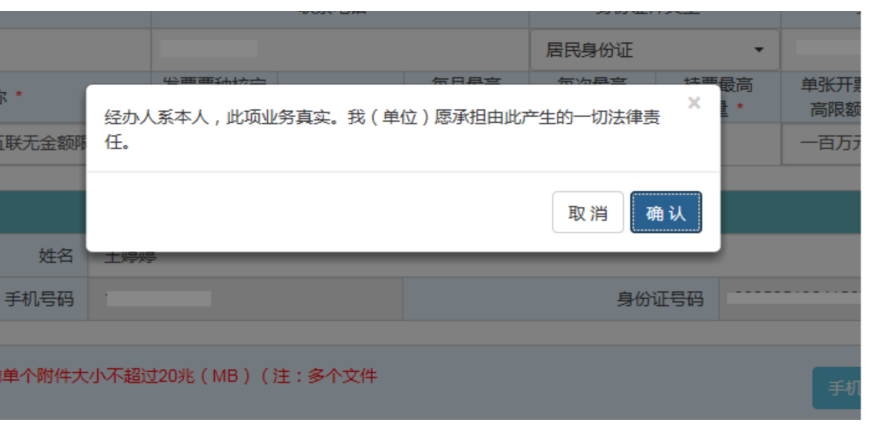 (3)確認無誤后點擊提交,系統(tǒng)跳出確認窗口“經(jīng)辦人系本人,此項業(yè)務真實。我(單位)愿承擔由此產(chǎn)生的一切法律責任?!?/span>