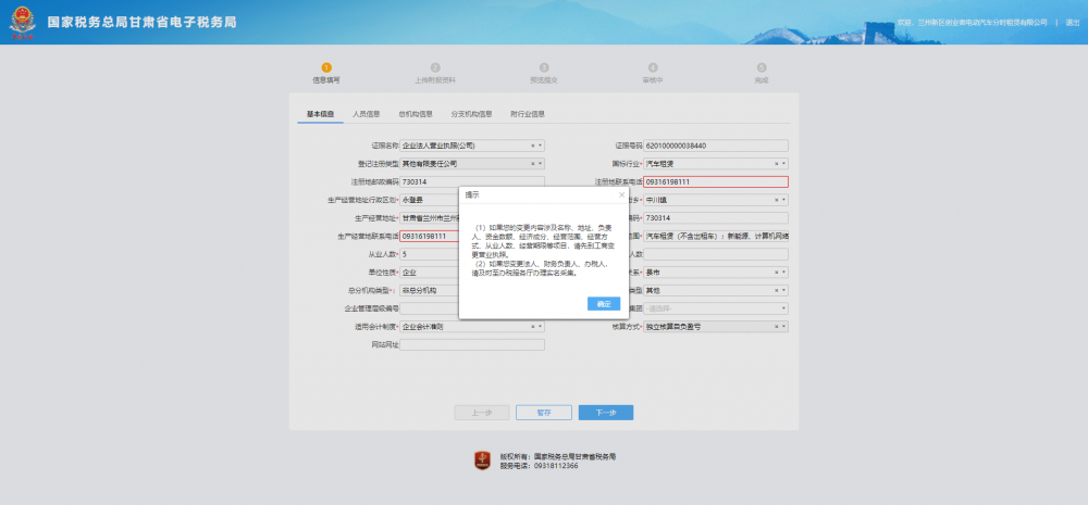 第六步 是否確認(rèn)信息變更