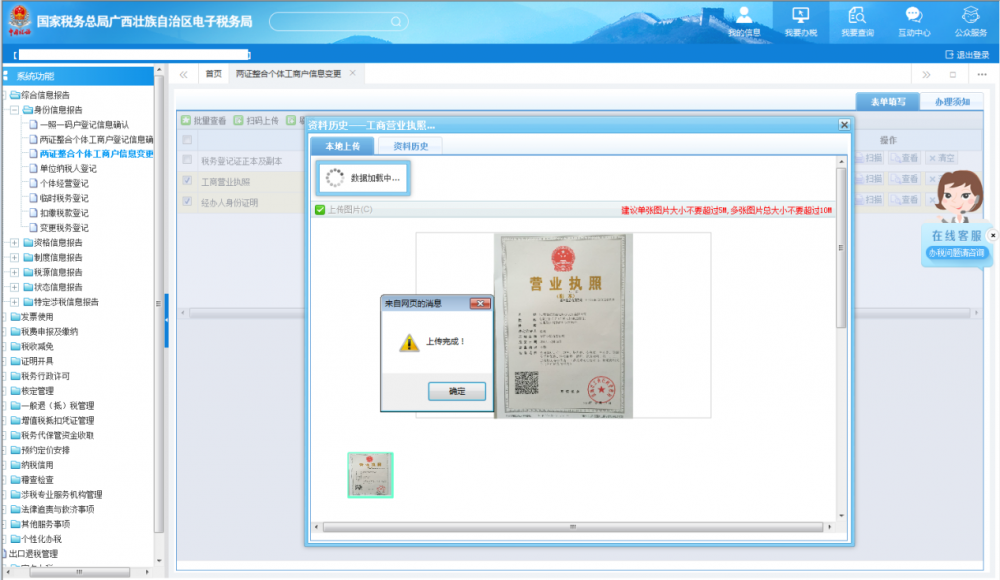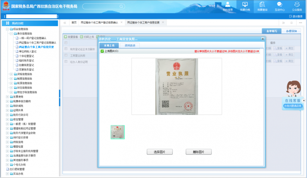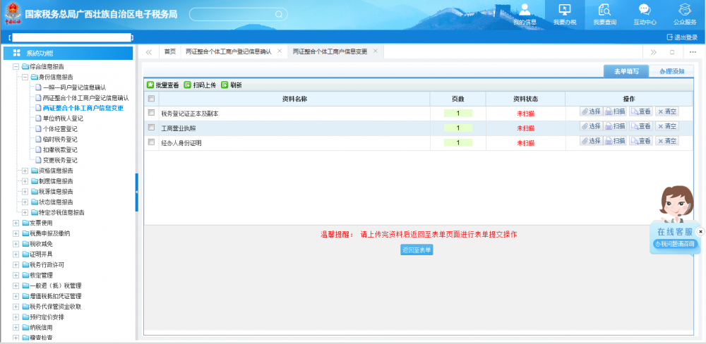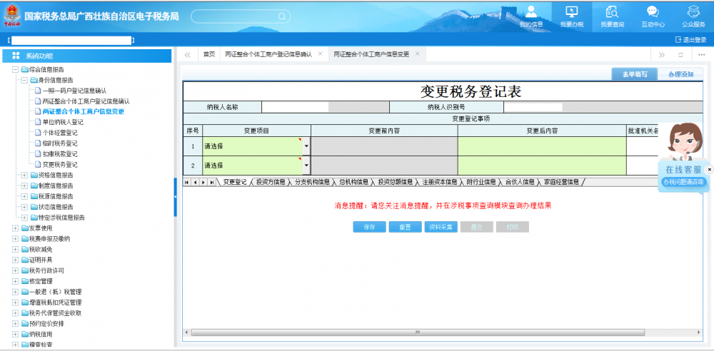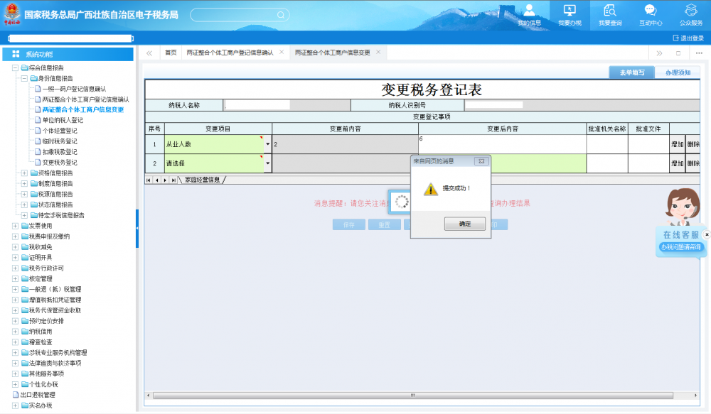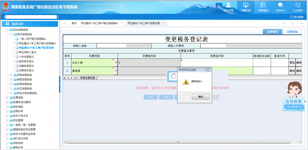 廣西電子稅務局兩證整合個體工商戶信息變更操作流程說明