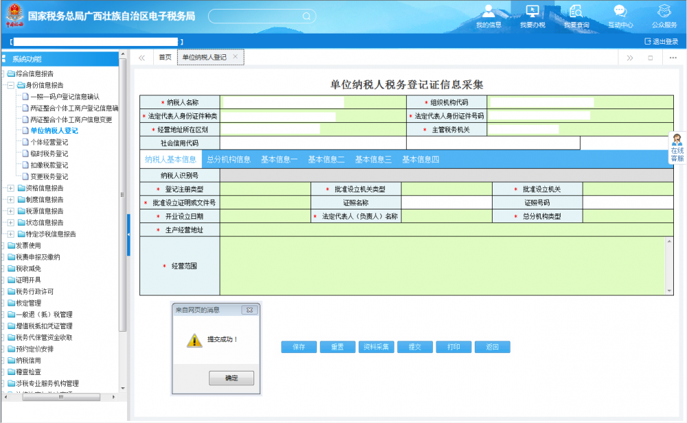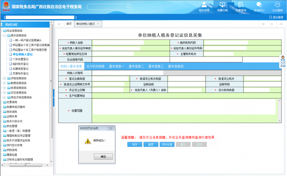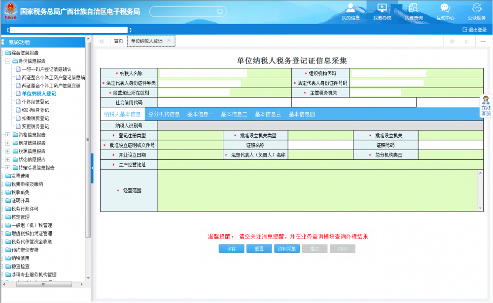 廣西電子稅務(wù)局單位納稅人登記操作流程說明