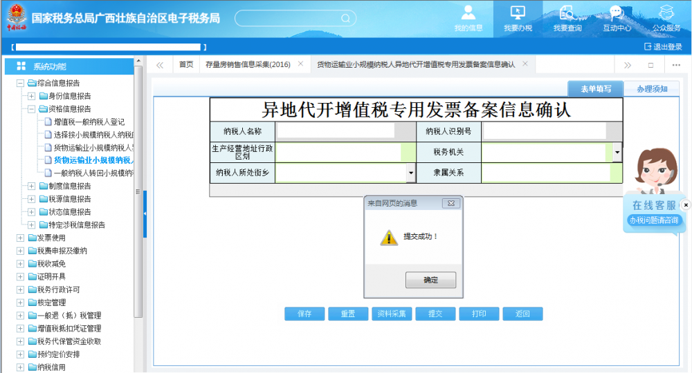 貨物運(yùn)輸業(yè)小規(guī)模異地代開增值稅專用發(fā)票備案信息確認(rèn)