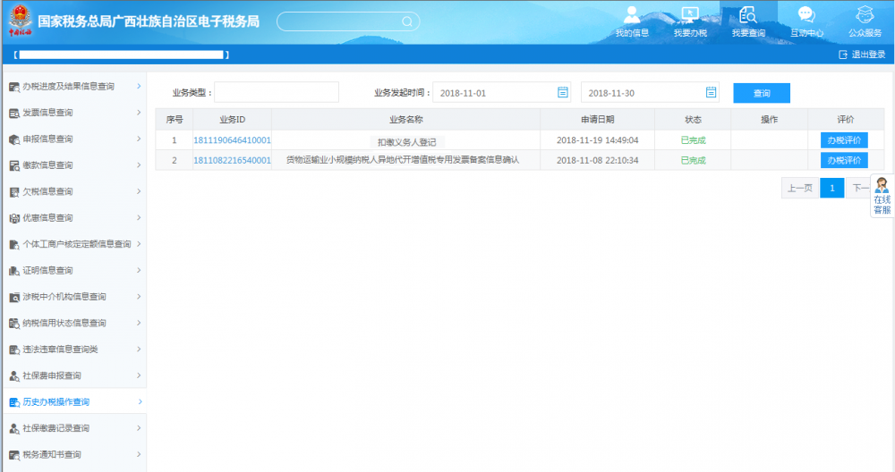 2、歷史辦稅操作查詢