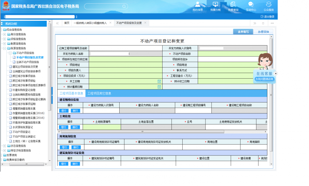 (一)登錄廣西電子稅務(wù)局填寫《不動(dòng)產(chǎn)項(xiàng)目報(bào)告及變更》