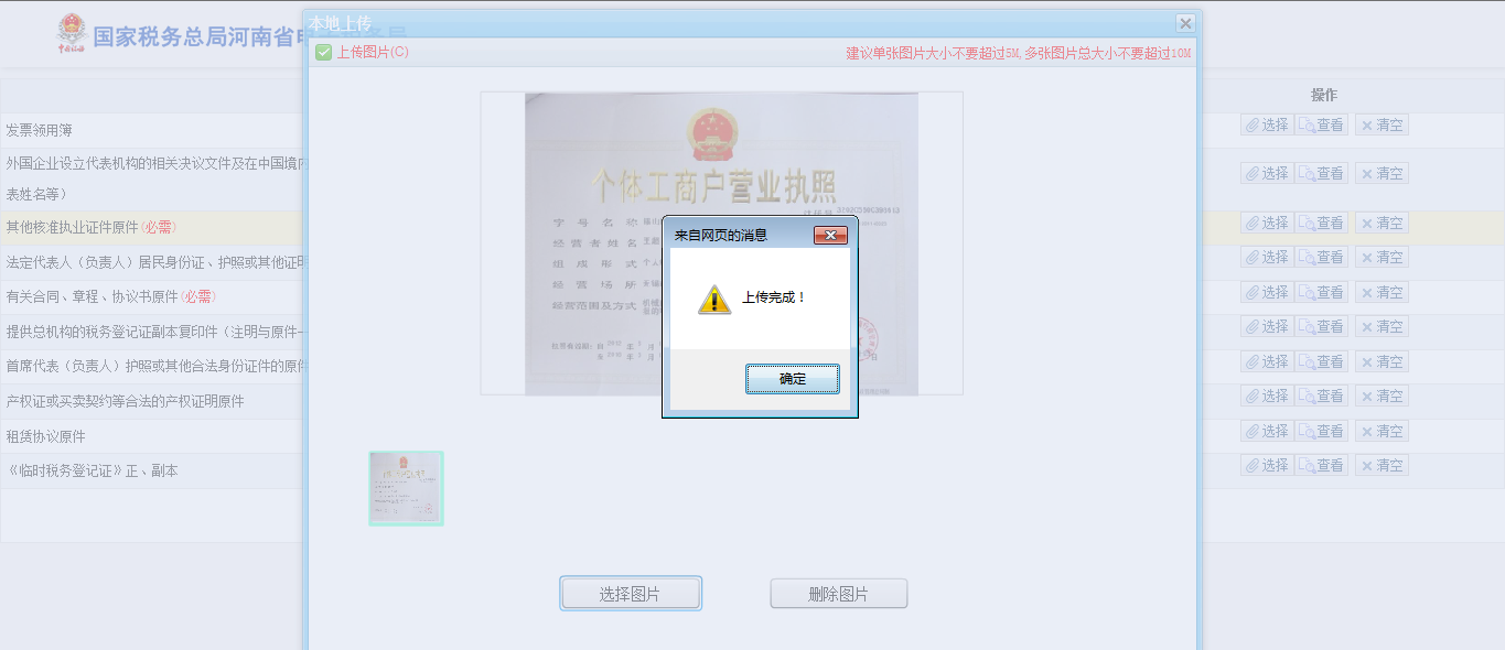 待頁(yè)面提示“上傳完成”后,點(diǎn)擊【確定】,即完成資料采集: