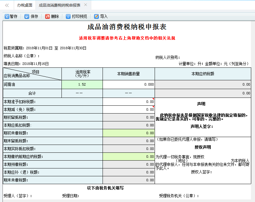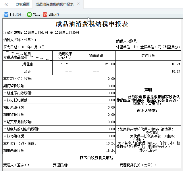 1.打開【成品油消費稅納稅申報表】,填寫表單: