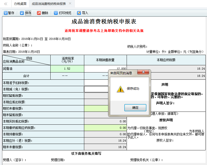 2.填寫表單,點擊【保存】按鈕,待頁面彈出提示框提示“保存成功”,點擊【確定】按鈕,表單填寫的內(nèi)容被保存: