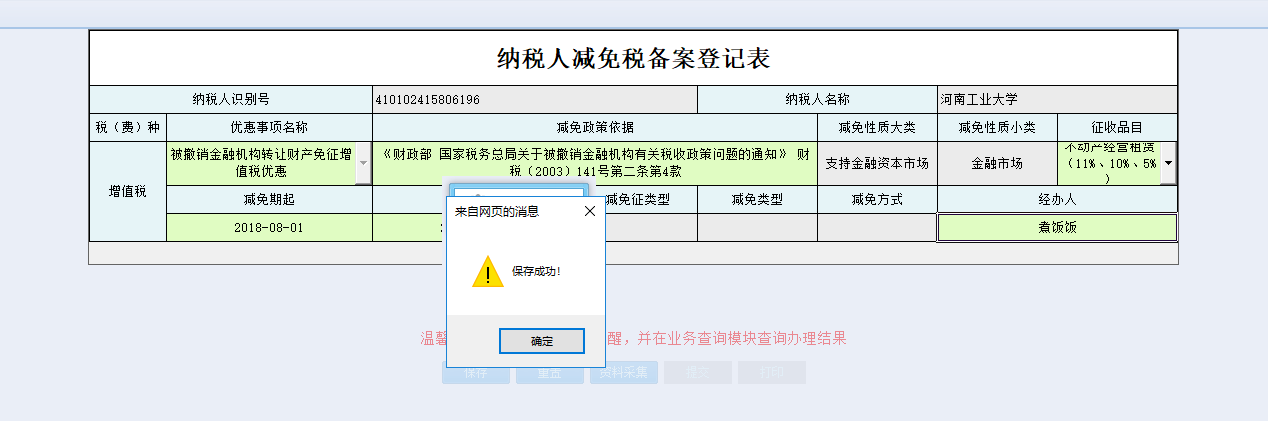 3.不允許同一稅種在同一所屬期間進行重復稅收減免事項備案。