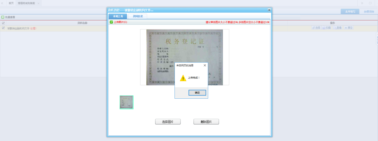 待頁面提示“上傳完成”后,點擊【確定】,即完成資料采集。