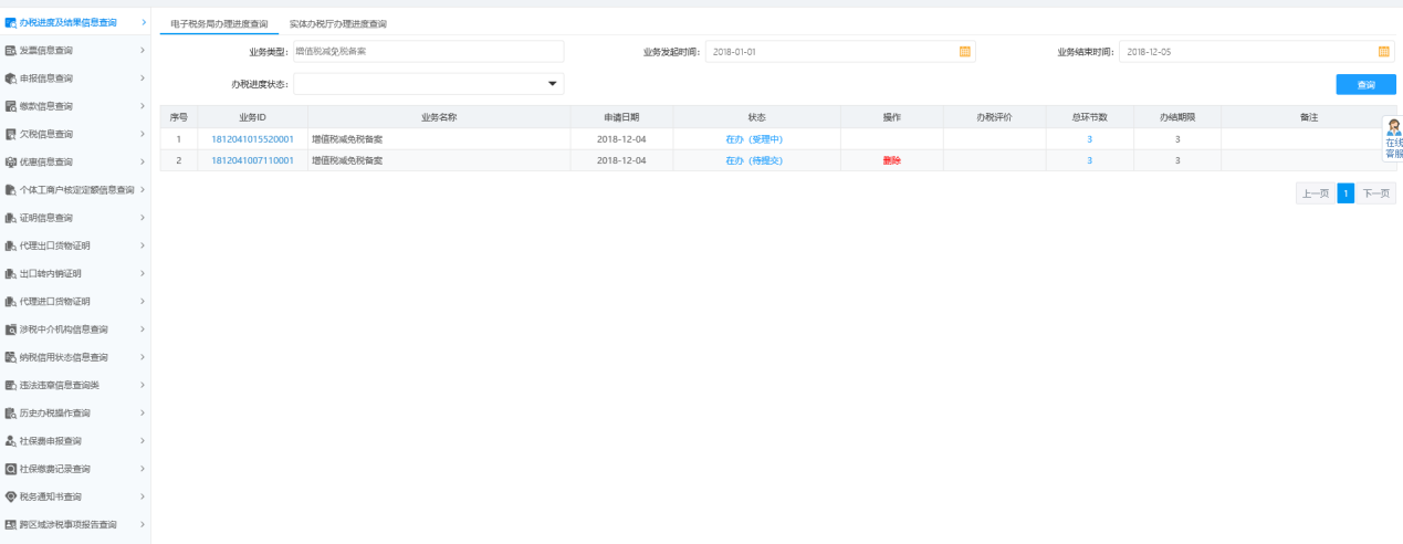 1.辦稅進度及結(jié)果信息查詢