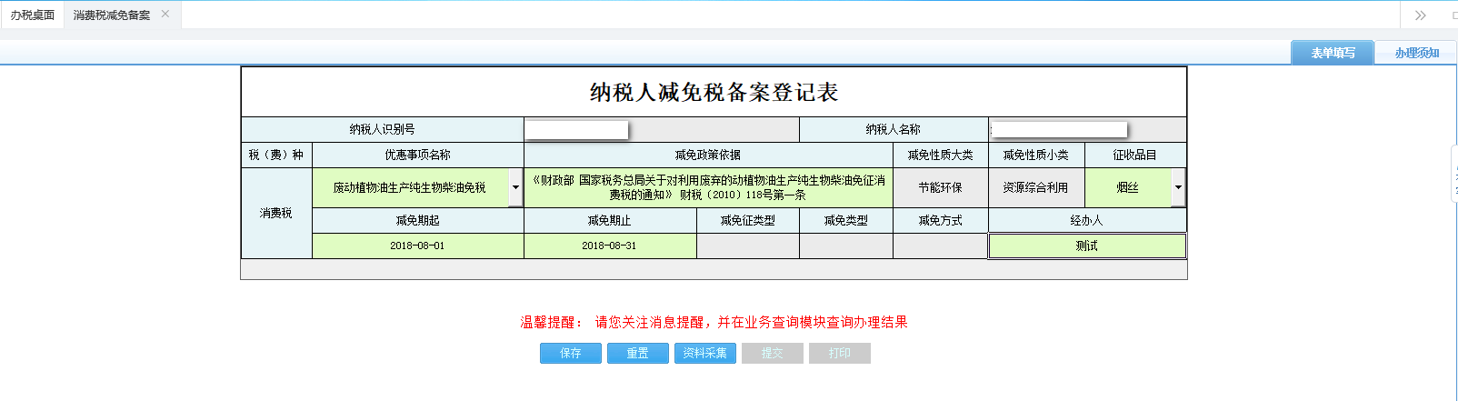 3.不允許同一稅種在同一所屬期間進(jìn)行重復(fù)稅收減免事項(xiàng)備案。