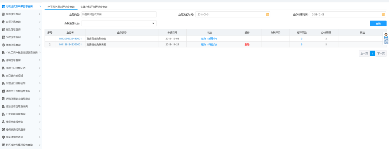 1.辦稅進(jìn)度及結(jié)果信息查詢