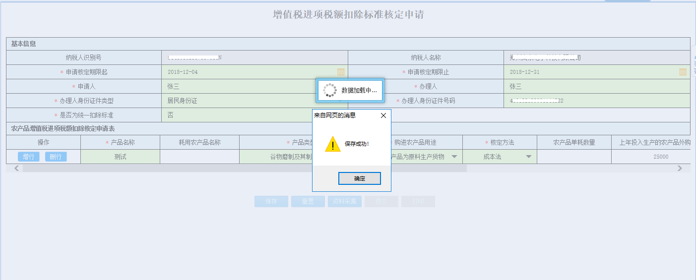 2.點(diǎn)擊【保存】按鈕,待頁面彈出提示框提示“保存成功!”,點(diǎn)擊【確定】按鈕,表單填寫的內(nèi)容被保存: