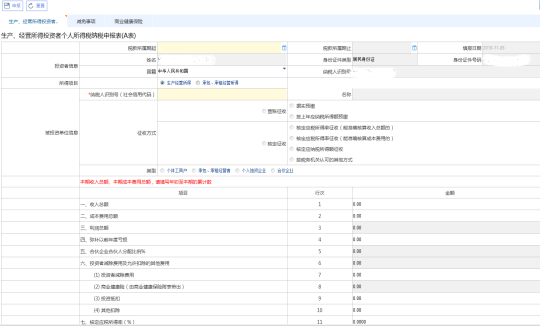 個(gè)人所得稅生產(chǎn)經(jīng)營(yíng)所得納稅申報(bào)表(A表)模塊主要是用于查賬征收“個(gè)體工商戶的生產(chǎn)、經(jīng)營(yíng)所得”和“對(duì)企事業(yè)單位的承包經(jīng)營(yíng)、承租經(jīng)營(yíng)所得”個(gè)人所得稅的個(gè)體工商戶、企事業(yè)單位承包承租經(jīng)營(yíng)者、個(gè)人獨(dú)資企業(yè)和合伙企業(yè)的預(yù)繳納稅申報(bào),以及實(shí)行核定征收的納稅申報(bào)。