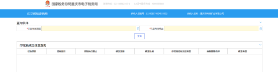 第三步:打開功能菜單后,系統(tǒng)將自動帶出該納稅主體的印花稅核定信息,錄入認(rèn)定有效期起止可查詢該時段是印花稅核定信息。