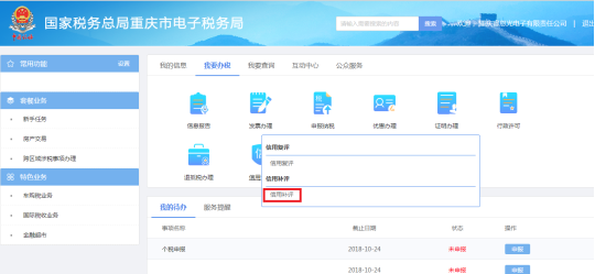 操作流程:登陸重慶市電子稅務(wù)局-我要辦稅-信用評價-信用復評-信用復評